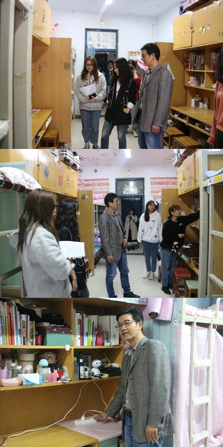 在此次视察工作中,党委副书记蔡中民、团委书记郭睿秉持着“关心员工宿舍生活、关爱员工生活健康”的理念,与同学们交流沟通,并进行亲切谈话。“宿舍冷吗?”“被子薄吗?”一句句简单的问候,温暖着同学们的心。党委副书记蔡中民、团委书记郭睿建议同学们要养成自律的品质,努力学习,在大学实现自己的价值。同时对宿舍的生活区域、用电情况、违规电器等进行检查,重点关注员工近期的生活动态,对宿舍楼道卫生、宿舍公共卫生区域进行详细的检查,排查可能存在的安全隐患。党委副书记蔡中民对宿舍安全做出了相应的要求,告诉同学们用电安全等相关知识,进一步提高了同学们的安全防范意识。